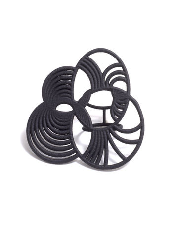 When I began development toward a body of work influenced by my findings in Japanese art, I too had to carefully consider my approach in using a 3D printing technique. Creating ornamental or wearable pieces holds its own constraints, using an ultra-modern technique inspired by a mastered ancient technique was a humbling experience. Line is one of the most complex functional elements in design and lends itself to many creative mediums. 3D printing and the digital tools used to create work are usually used for parametric designs. As I had expected using the tools to create organic forms produced interesting and powerful results. The work has managed to escape being identifiable as 3D printed and has produced highly detailed and considered compositions of clustered line.